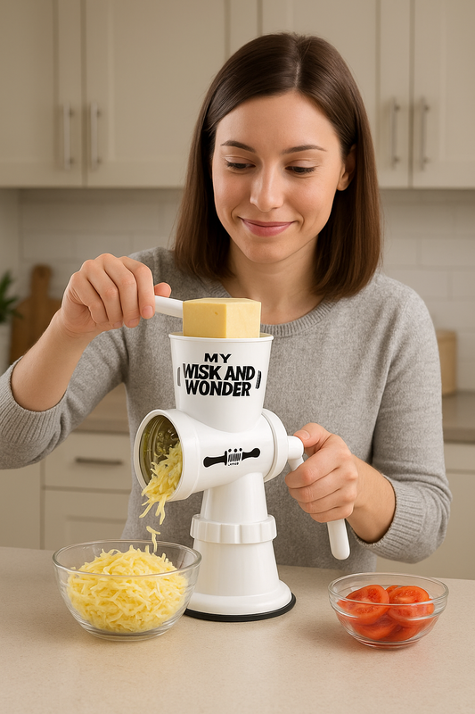 Premium Küchenhobel & Gemüsereibe – Multifunktionaler Dreh-Cutter mit 3 Trommeln für Gemüse, Käse & Obst